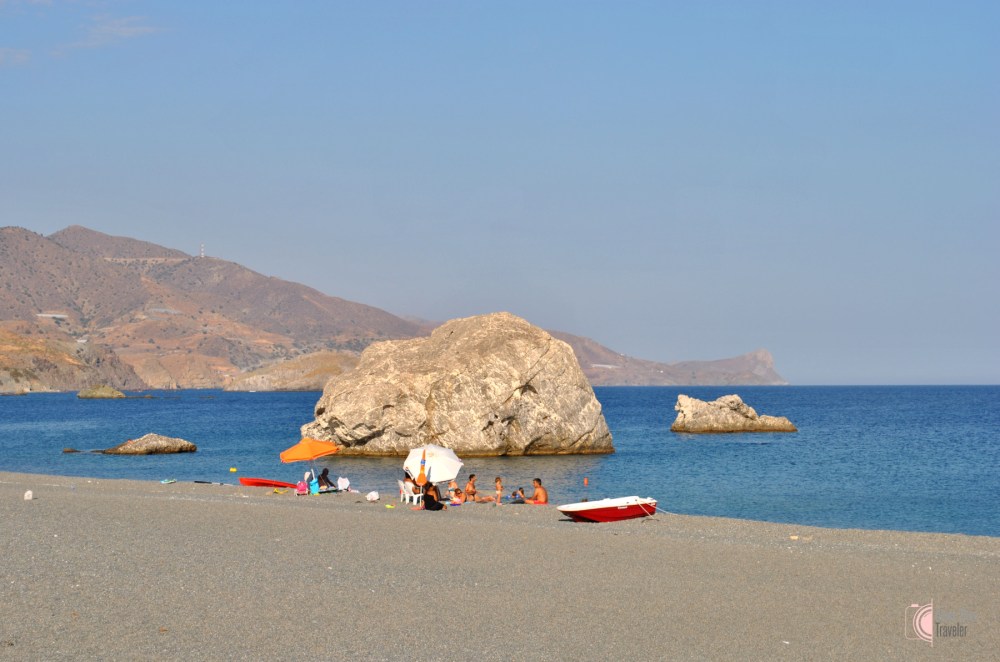 Η μεγάλη παραλία που συναντήσαμε, λίγο πριν τον οικισμό με τον όμορφο κολπίσκο, ήταν αυτή που μας εντυπωσίασε πραγματικά. Μία μαγευτική θάλασσα απλωνόταν στα πόδια μας, πεντακάθαρη και καταγάλανη. Μία από τις πιο όμορφες παραλίες στα νότια παράλια της Κρήτης, τα οποία βέβαια, η αλήθεια να λέγεται, σπάνια μας προδίδουν!