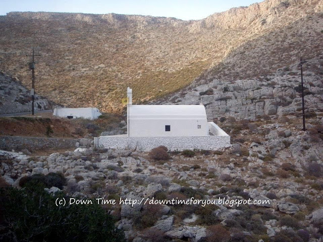 Στο βάθος της παραπάνω φωτογραφίας βλέπετε την εκκλησία της Παναγίας. Είναι η μεγαλύτερη εκκλησία της Φολέγανδρου, αφιερωμένη στην Κοίμηση της Θεοτόκου. Βρίσκεται σκαρφαλωμένη στο βράχο πάνω από τη Χώρα και είναι χτισμένη κατά πάσα πιθανότητα στη θέση αρχαίου ναού, οικοδομικό υλικό του οποίου χρησιμοποιήθηκε για την ανέγερσή της.