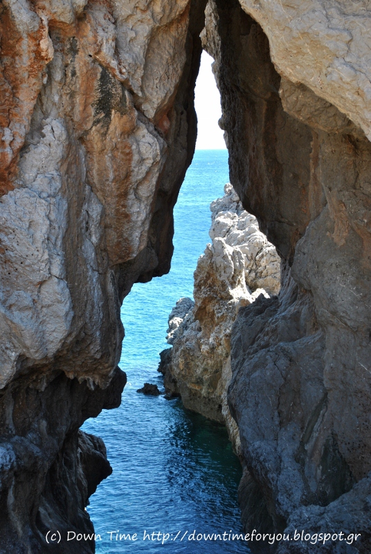 Μέσα από τις σχισμές των βράχων, ξεπροβάλει πανέμορφη η θάλασσα.