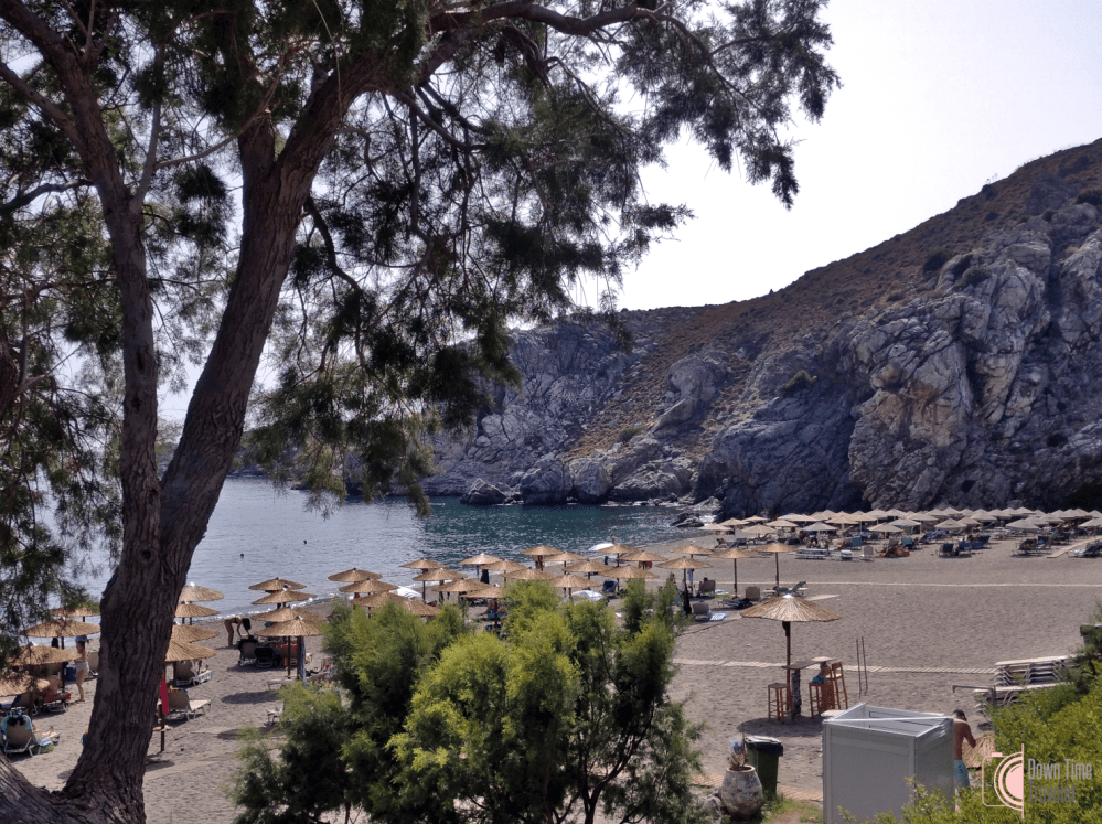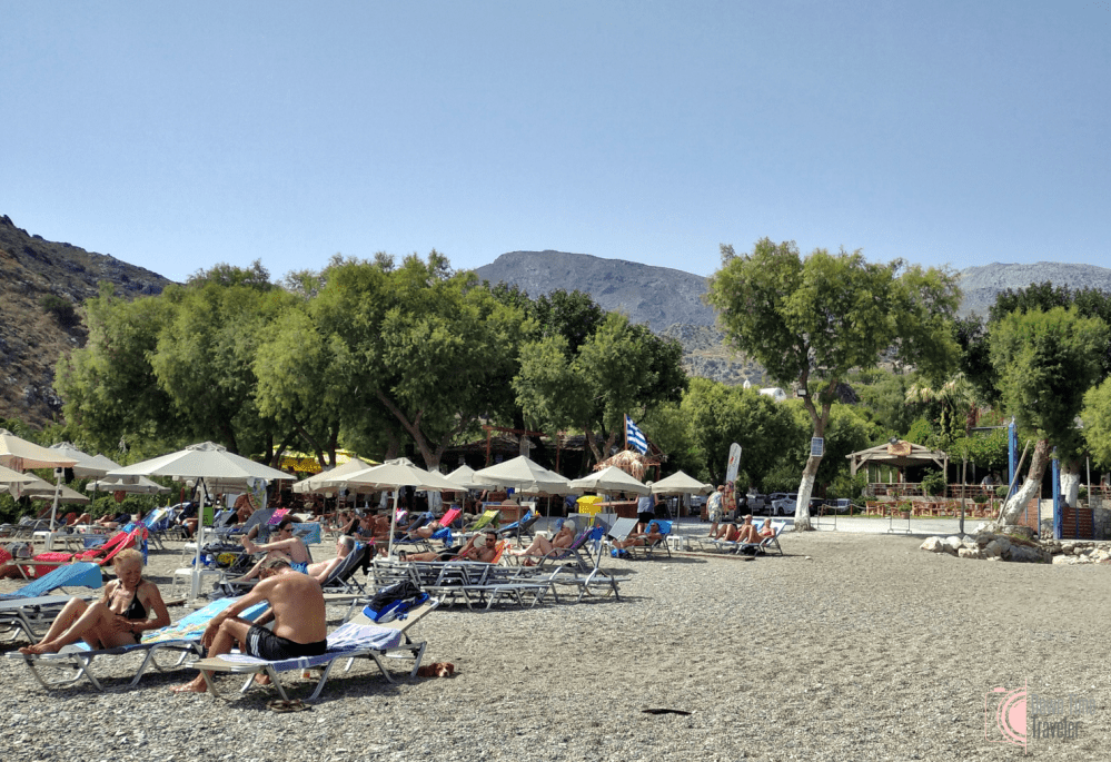 Παρότι πρόκειται για μια οργανωμένη παραλία με ντους, ομπρέλες, αλλά και beach bar και ταβέρνες, έχει αρκετό διαθέσιμο χώρο και για τους παραθεριστές που προτιμούν πιο χαλαρές κι ελεύθερες καταστάσεις. Επίσης, αριστερά και δεξιά από την παραλία υπάρχουν βράχια για εκείνους που επιθυμούν περισσότερη απομόνωση ή/και φυσική σκιά, την οποία μάλιστα μπορεί κάποιος να πετύχει και με τη βοήθεια των δέντρων κατά μήκος της παραλίας.