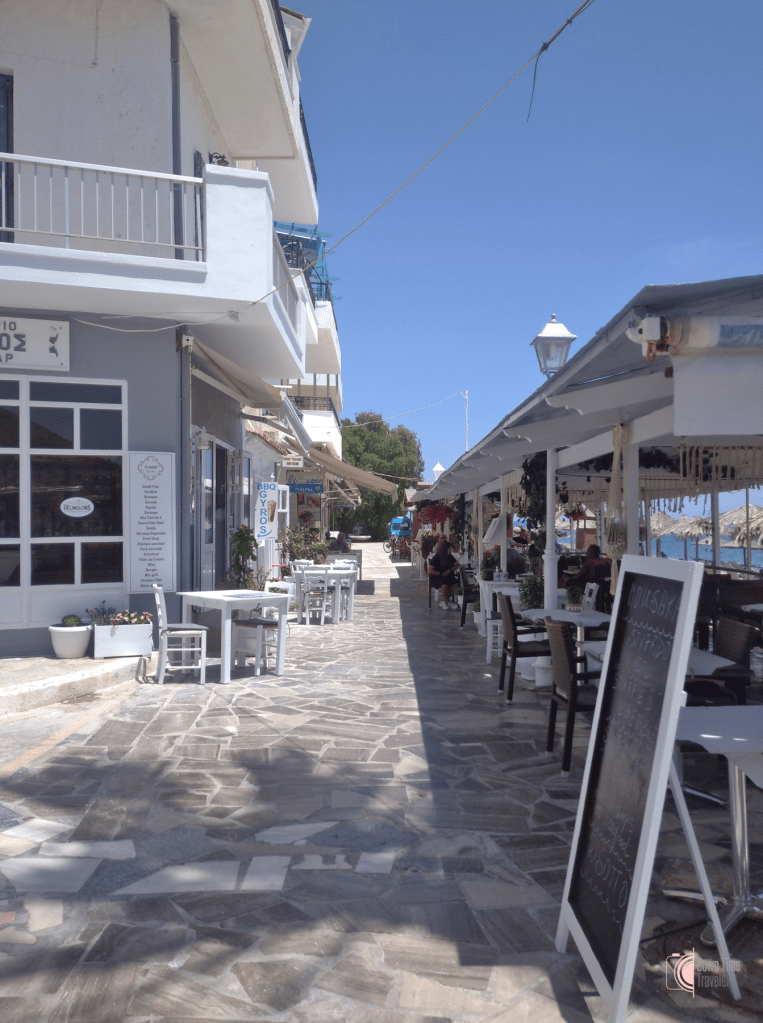 Στο χωριό του Μύρτου θα βρείτε πολλά άσπρα σπιτάκια και οικήματα, που έχουμε συνηθίσει να βλέπουμε κυρίως στις Κυκλάδες, και γραφικά δρομάκια, για να κάνετε τη βόλτα σας και να χαλαρώσετε, όταν πια ολοκληρώσετε το μπάνιο σας. Υπάρχουν επίσης διάφορες ταβέρνες και καφέ – μπαρ, όπου μπορείτε να δοκιμάσετε την τοπική κουζίνα και να απολαύσετε δροσιστικά ποτά. Να σημειώσω σε αυτό το σημείο ότι η κεντρική, μεγάλη παραλία του χωριού βρίσκεται ακριβώς μπροστά από αυτά τα μαγαζιά, όπως φαίνεται και στη φωτογραφία που προηγήθηκε και σε αυτές που ακολουθούν.
