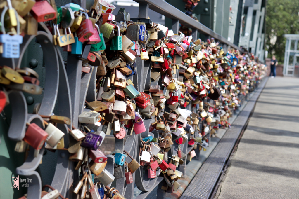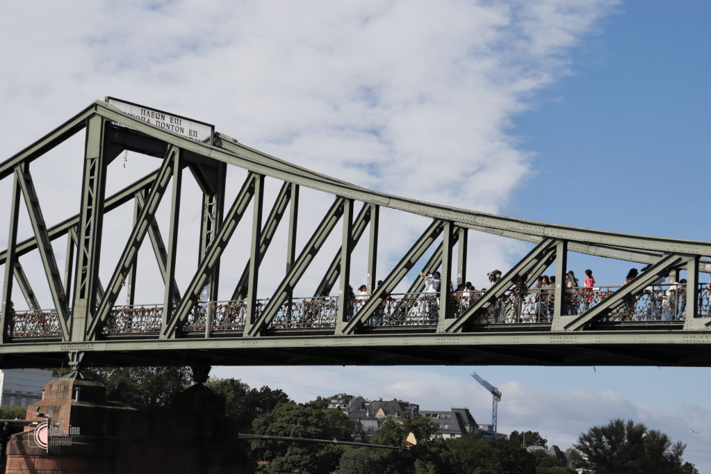 Όπου υπάρχει καπνός υπάρχει και φωτιά, κάπως έτσι, όπου υπάρχει… ποταμός, υπάρχουν και γέφυρες! Στην συγκεκριμένη περίπτωση μάλιστα είναι αρκετές οι γέφυρες που διασχίζουν τον Μέγα Ποταμό, συνδέοντας τα διάφορα μέρη της πόλης. Μία από τις πιο δημοφιλείς είναι η Σιδερένια γέφυρα της Φρανκφούρτης (Eiserner Steg), με τα χιλιάδες λουκέτα και την ελληνική επιγραφή στην κορυφή της.