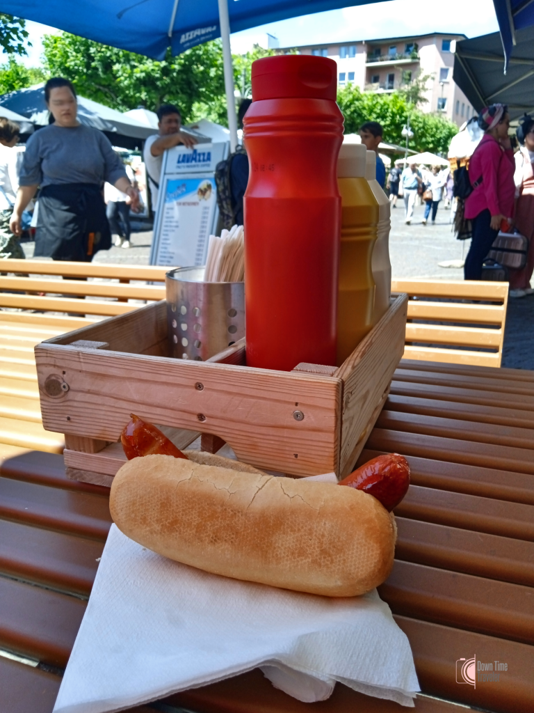 Η Φρανκφούρτη προσφέρει επίσης και μια ποικιλία γευστικών επιλογών, από παραδοσιακές γερμανικές συνταγές μέχρι διεθνή κουζίνα. Το πιο διάσημο γαστρονομικό προϊόν της είναι το λουκάνικο Φρανκφούρτης, γνωστό και ως «Frankfurter Wurstchen» στα γερμανικά. Συχνά σερβίρεται μέσα σε ψωμάκι, συνοδευόμενο από κάποια γερμανική γαρνιτούρα, όπως η ζαουέρ κραουτ (Sauerkraut), ή αλλιώς ξινό λάχανο, και ποικιλίες μουστάρδας. Θα σας πρότεινα, την πρώτη φορά τουλάχιστον, να το δοκιμάσετε μέσα σε ψωμάκι, μόνο με μουστάρδα, για να μπορέσετε να αναγνωρίσετε την πραγματικά πολύ νόστιμη γεύση του λουκάνικου Φρανκφούρτης! Αξίζει!