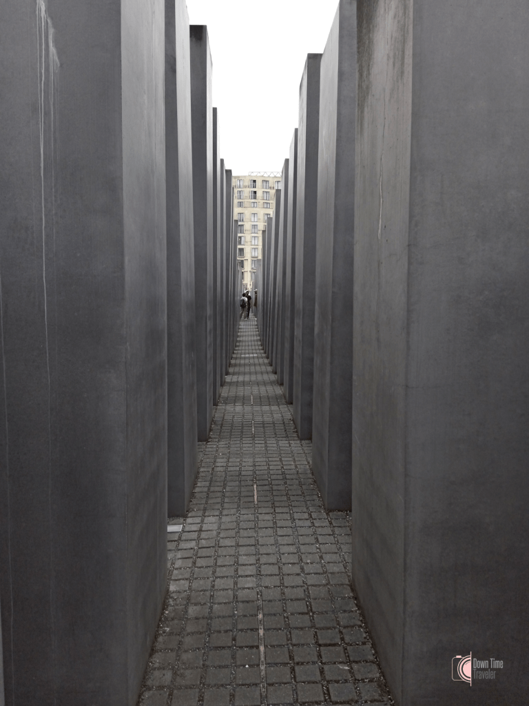 Το μνημείο αποτελείται από 2.711 στήλες από σκυρόδεμα που βρίσκονται σε ένα πλέγμα πάνω σε μια επιφάνεια περίπου 19.000 τετραγωνικών μέτρων. Οι διαφορετικές υψομετρικές διαφορές των στηλών δημιουργούν μια αίσθηση αποπροσανατολισμού όταν οι επισκέπτες περιπλανώνται στον χώρο.