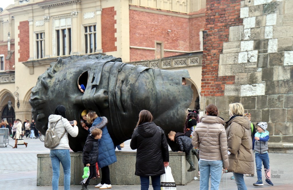 Ανάμεσα στα πιο αναγνωρίσιμα σημεία της Κρακοβίας, είναι το γλυπτό στην δυτική γωνία της κεντρικής πλατείας. Ένα δημοφιλές σημείο συνάντησης και σχεδόν πάντα φόντο για φωτογραφίες του κάθε τουρίστα ου επισκέπτεται την πόλη. Το «χαϊδευτικό» του όνομα είναι «Το Κεφάλι», ενώ ο επίσημος τίτλος του χάλκινου γλυπτού είναι «Eros Bendato» (Δεσμευμένος Έρως) και δημιουργήθηκε από τον Πολωνό καλλιτέχνη Ίγκορ Μίτορα.